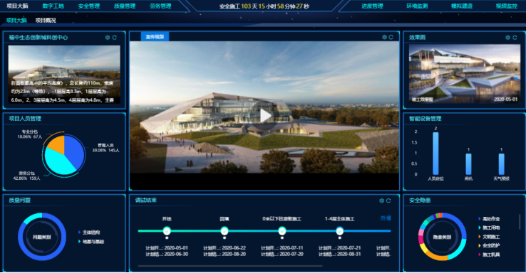项目施工过程中全面推进信息化技术运用,保证运用的完整性、系统性及创新性。通过整体的智慧工地应用,辅助项目相关人员对项目的文明工地、观摩会等信息化平台进行演示汇报等系列工作。