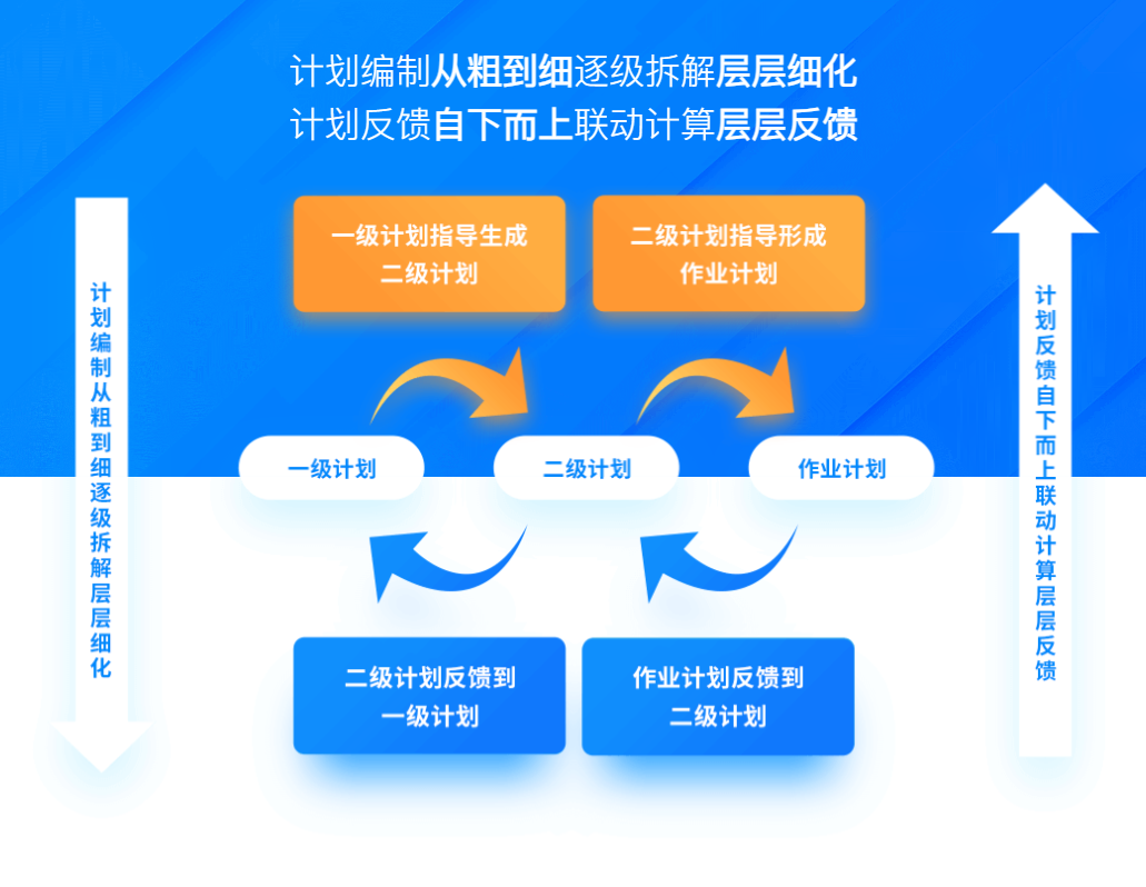 计划编制从粗到细逐级拆解层层细化计划编制从粗到细逐级拆解层层细化 计划反馈自下而上联动计算层层反馈 |