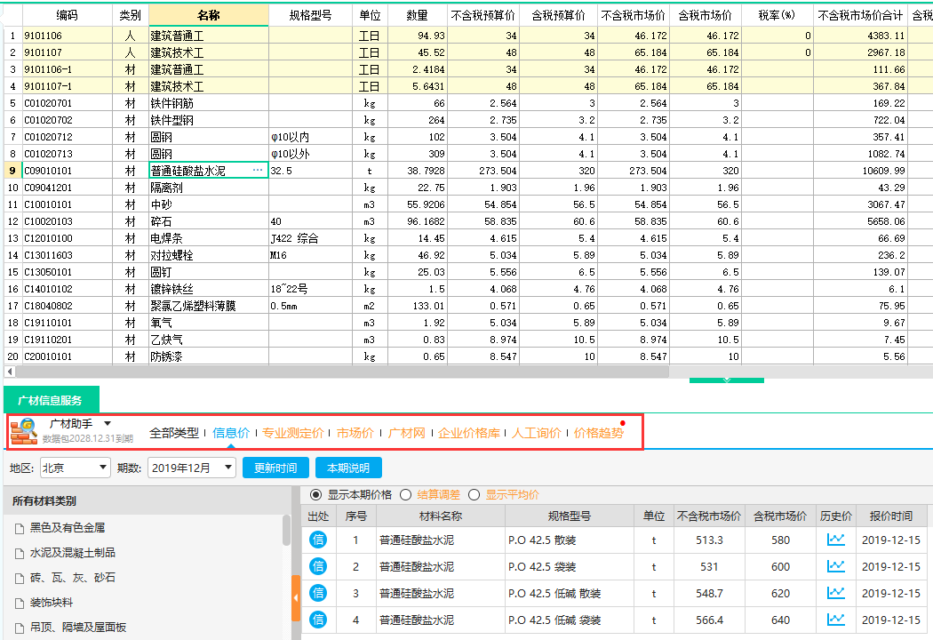 云电力内置广材助手,可查各地区信息价、市场价等,解决了电力造价用户时间紧、询价多、询价难度大的痛点。