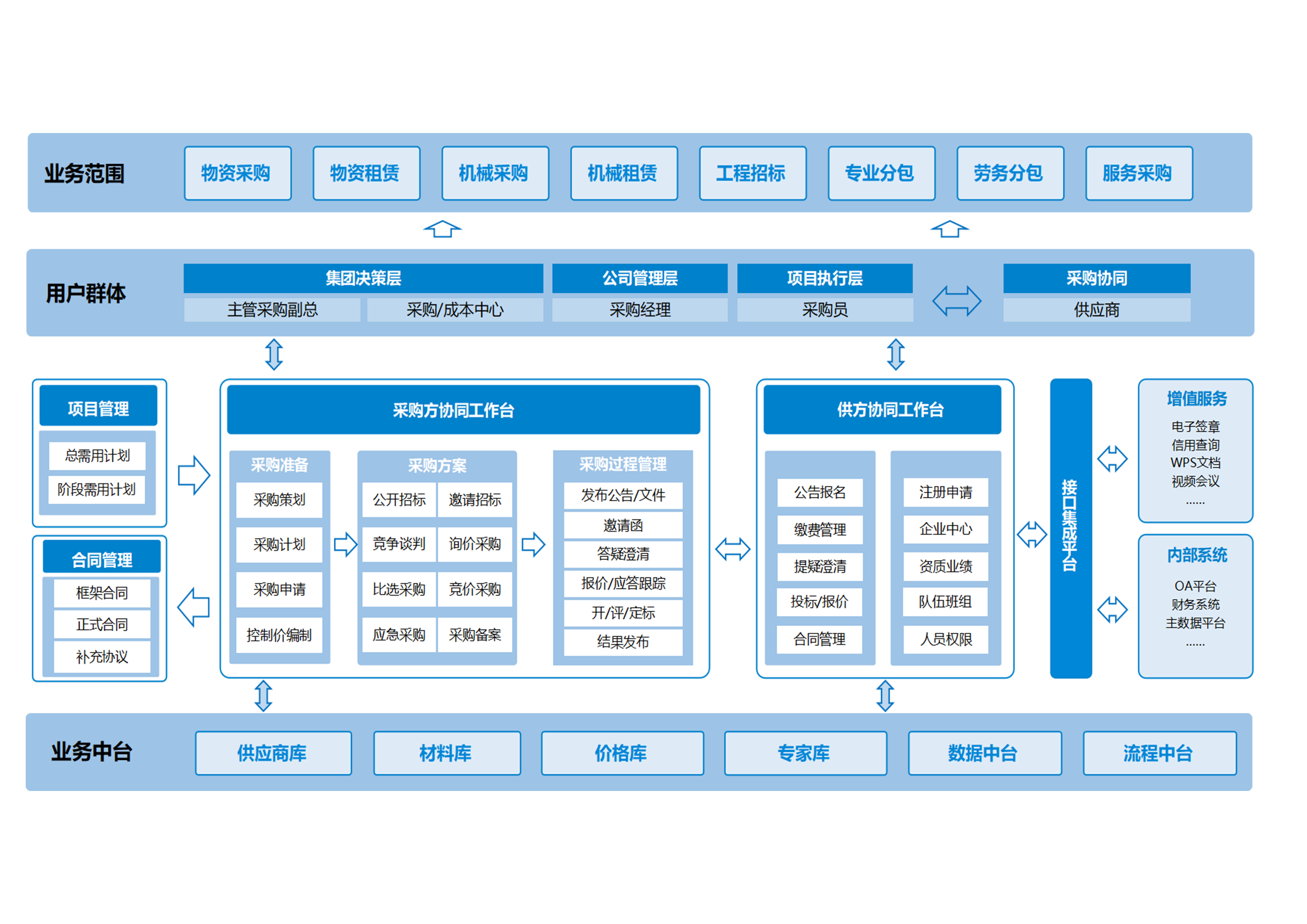 太阳成tyc7111cc数智化供应链解决方案,以企业采购供应链全过程管理为主线,采购方与供应商依托网络采购平台,满足从采购寻源、合同签订、订单处理、物流跟踪、对账结算、发票登记以及付款等在线协同应用。支撑多业态、不同转型阶段企业采购供应链数智化转型升级,实现供应链体系的阳光合规、降本增效,让采购成为企业新的效益增长极,助力企业高质量发展。