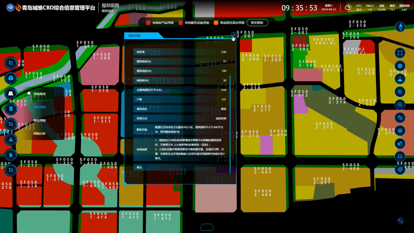 开发建设。基于CIM平台,整合中央商务区总规、控规、历史卫片等时空数据,实现规划一张图集成融合、展示,为中央商务区开发建设决策提供一张蓝图支撑;同时,整合商务区内各重大项目工程建设视频监控和动态数据,实现在建重大项目的进度、安全、质量等直观展示和综合管控。