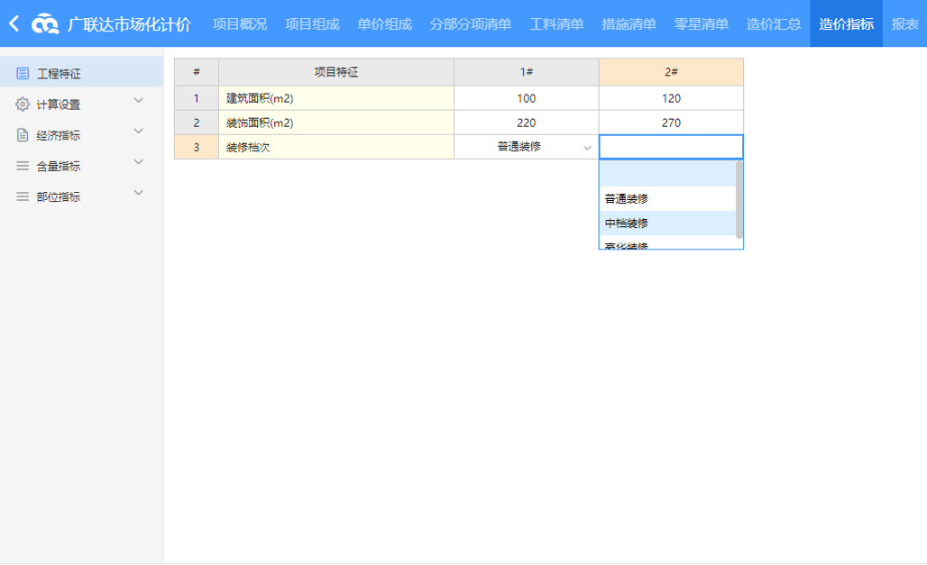 —————————对于土建总包、精装、景观、幕墙等全专业工程均采用企业清单、港式清单模式计价的场景,满足从清单编制、投标报价、报价分析、指标统计、清标分析一体化应用,全面提升造价作业质量及效率。 |
