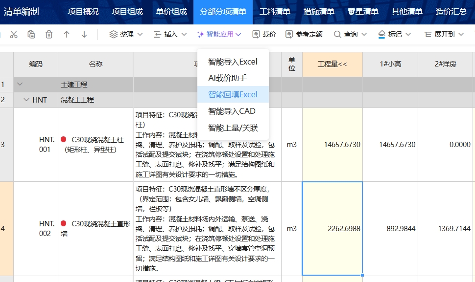 智能线下EXCEL数据一键智能导入,自动识别表格链接公式。清单组价摆脱复杂公式链接,零计算错误。招标清单变更一键智能更新。 |